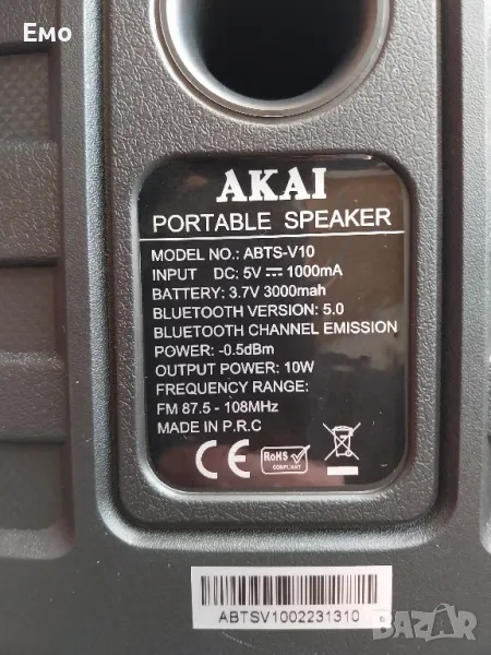 Преносима тонколона с Bluetooth LED дисплей USB слот AUX вход - AKAI ABTS-V10
