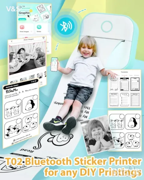 Phomemo T02 е модерен принтер, който ви позволява да отпечатате незабавно и много евтино всякакви графики от телефон/смартфон/таблет с ANDROID или IOS