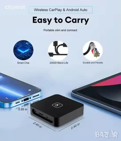 • Интегриране на CAR PLAY: Свържете безпроблемно телефона си към информационно-развлекателната система на вашия автомобил с CAR PLAY Box Dongle.