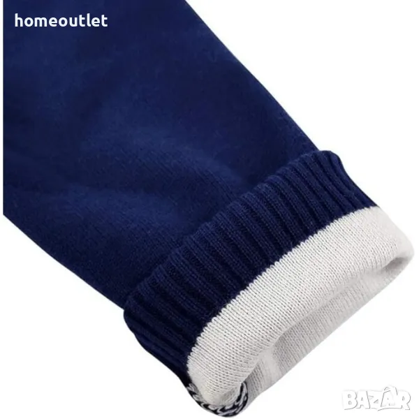 Пуловерът има класическа права кройка.