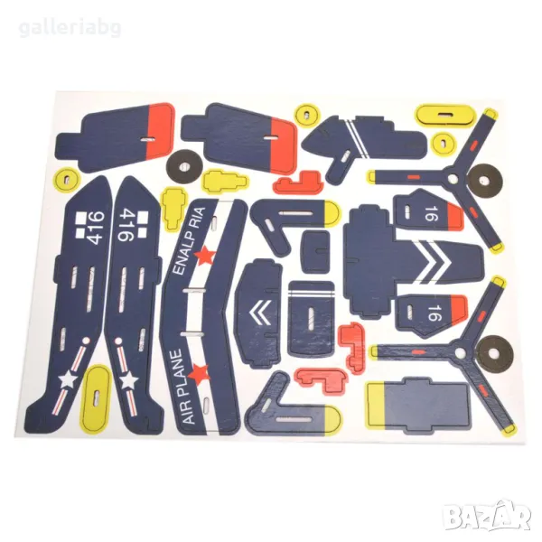 Дървен 3D пъзел във формата на самолет с две перки.