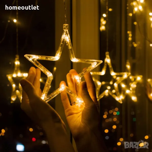 Светлинната лента със звезден дизайн е с размери 205 x 98 см.