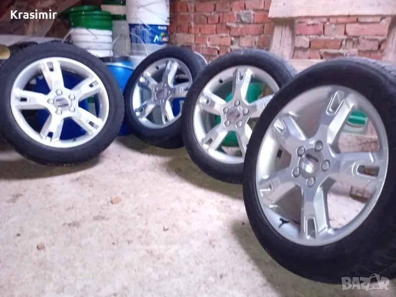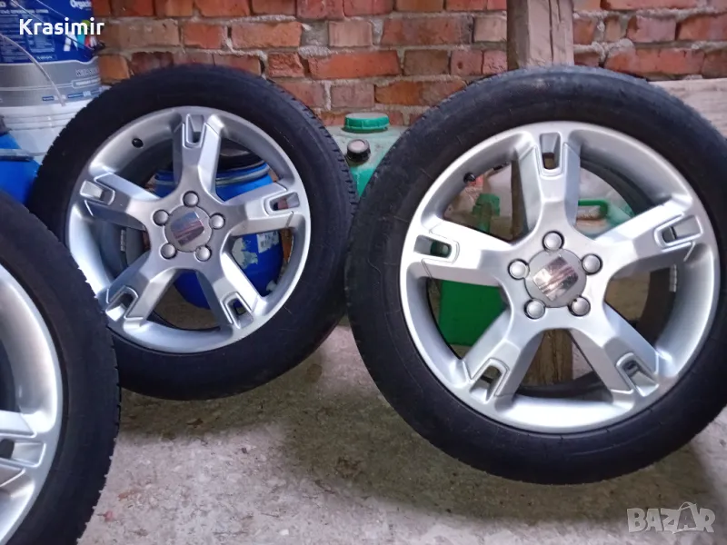 Алуминиеви джанти 5х112х17 от сеат алтеа фриитрак. Гумите са износени, но стават за един сезон