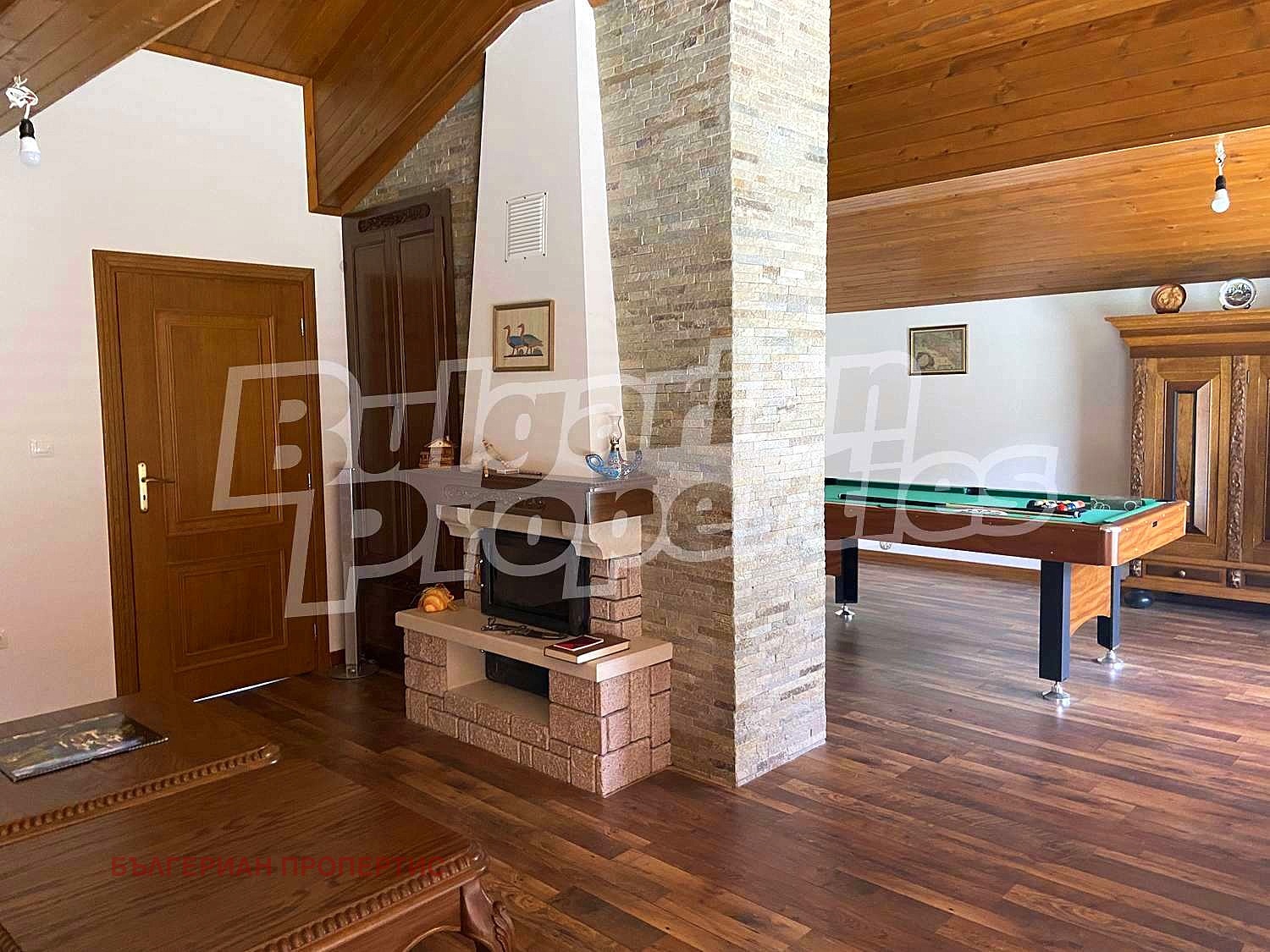 Четвърти етаж - обширно помещение, с камина от травертин, с водна риза. Таванът е с наклон, с красива дървена обшивка, като в най- високата си част, светлата височина е над 3 метра. Има билярд и класически мебели. На етажа има баня с тоалетна.