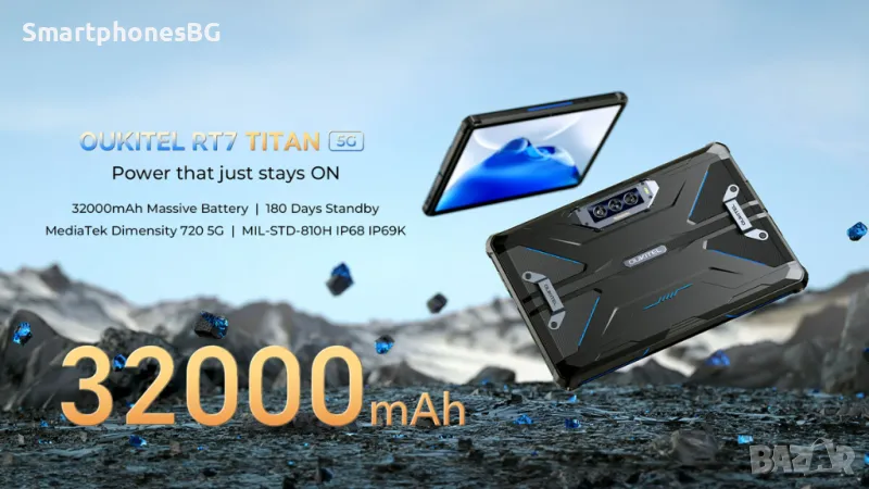 Таблет Oukitel RT7 Titan 16GB RAM 256GB ROM 10.1" Таблет с IP68 защита, 32000 mAh батерия