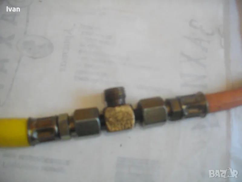 Разклонителният тройник на маркучите е със свободен извод за присъединяване на трети маркуч. Резба за присъединяване ф12 мм.