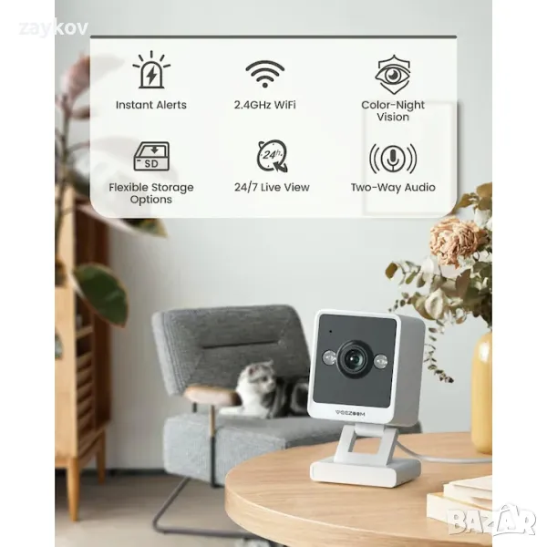 Вътрешна камера за сигурност VeeZoom, 2K, 3MP, WiFi