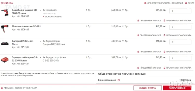 Магазинската цена на комплекта е: 1 932лв БЕЗ ДДС (С ДДСТО е 2 318лв)