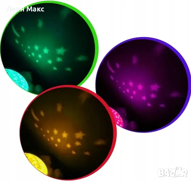 Цветен проектор, който показва звезди по стените или тавана.
