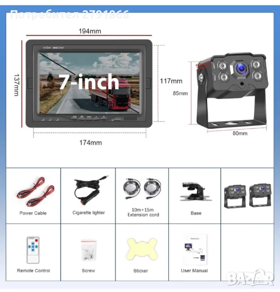 Автомобилни камери за заден ход AHD нощно виждане + 7-инчов автомобилен монитор за камион/ремарке/автобус/ван/превозно средство