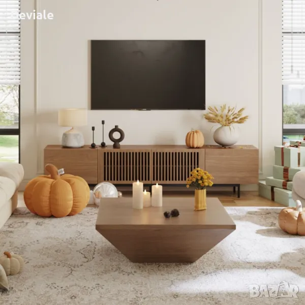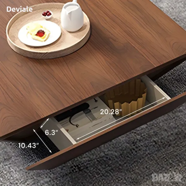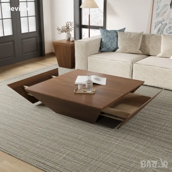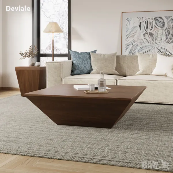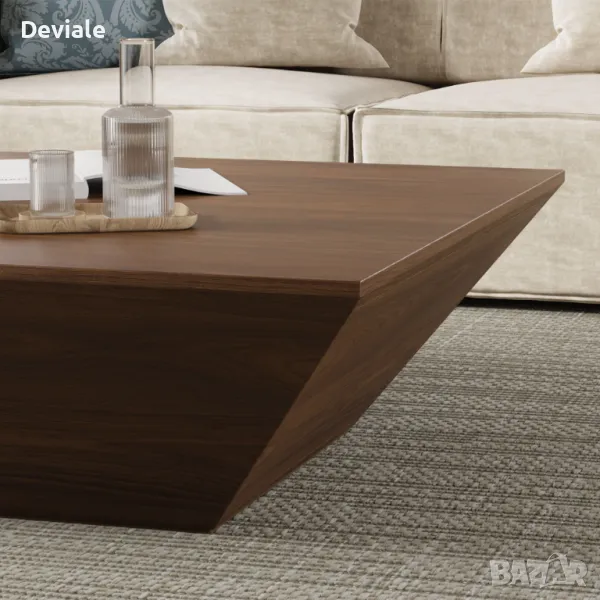 Модерна Минималистична дървена трапецовидна холна масичка за кафе с място за съхранение, орехов фурн