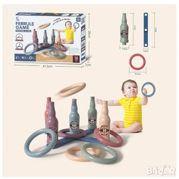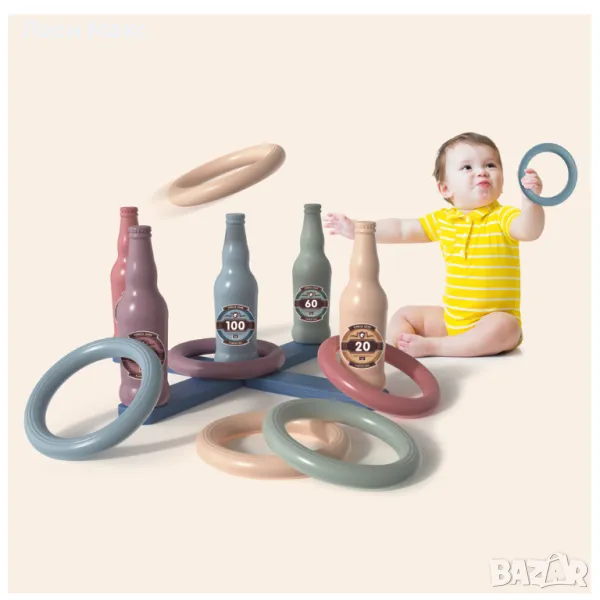 Изработена от здрава, нетоксична пластмаса, тази игра за хвърляне на пръстен е безопасна за деца. Цветните бутилки помагат за разпознаването на цветовете по време на игра.