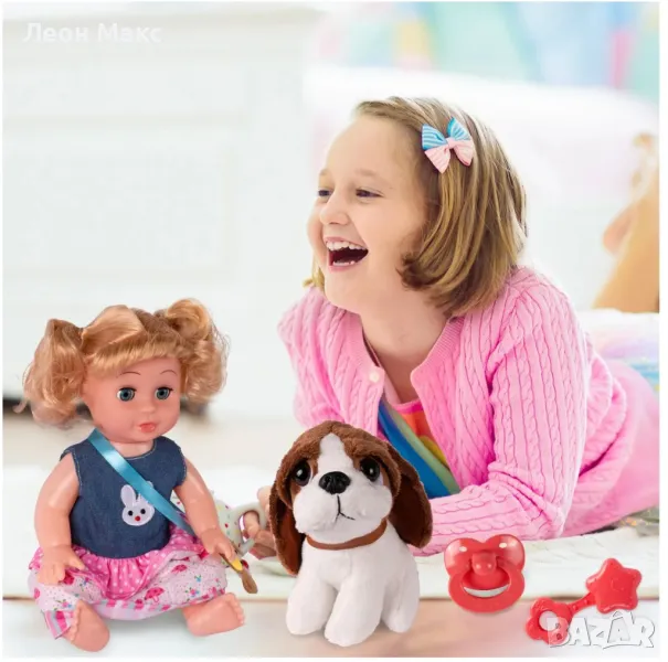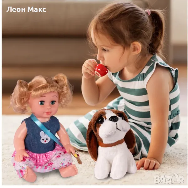 Очарователна кукла за с куче ще зарадва всяко момиче.
