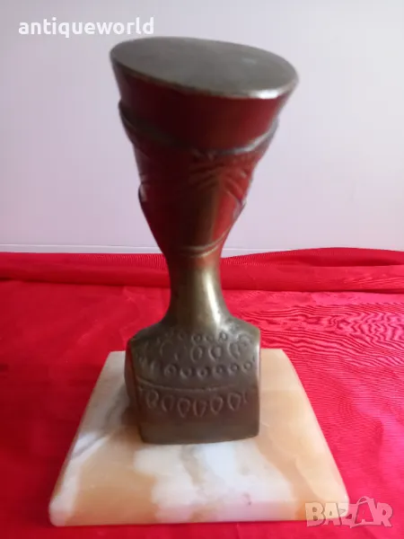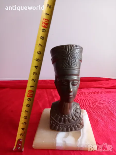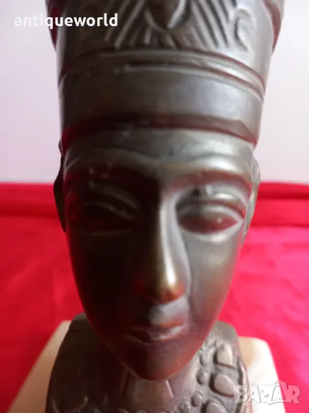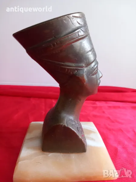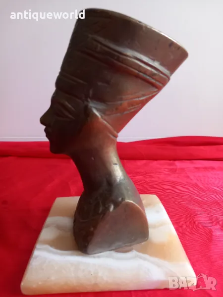 Красива Стара Египетска Масивна Бронзова Статуетка НЕФЕРТИТИ.Масивен Бронз върху Постамент от Полускъпоценен камък ОНИКС.