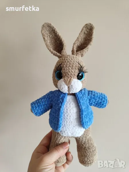Зайчето Питър е ръчно изплетен от мека плюшена прежда.