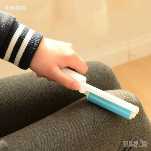 Миеща ролка за обиране на косми, мъхчета. Ролката има лепкава повърхност, която лесно обира косми от домашни любимци, мъх, паяжини, пърхут от дрехите, прах.