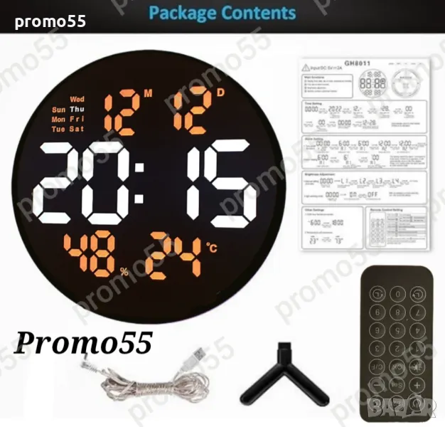 Този изключителен дигитален часовник не само показва точното време, но съчетава няколко функции, които го правят перфектен за декорацията на вашия дом или офис. Снабден с LED дисплей с висока разделителна способност, часовникът показва следните информации: