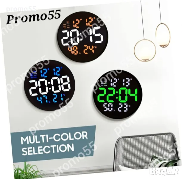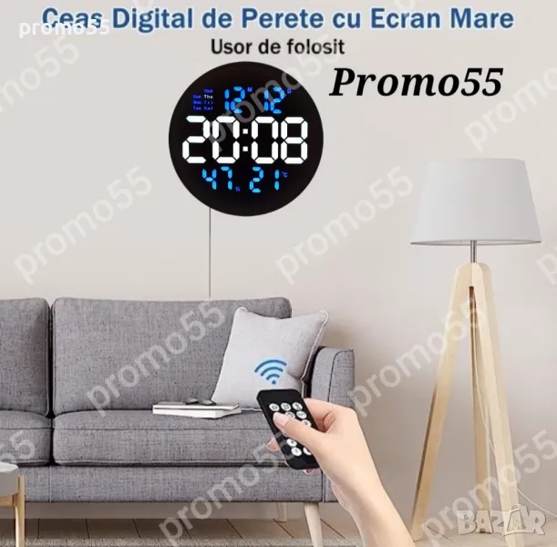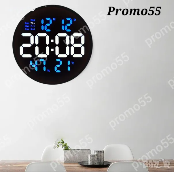 Цифров стенен или настолен часовник с регулируема яркост на лед дисплея и дистанционно управление.