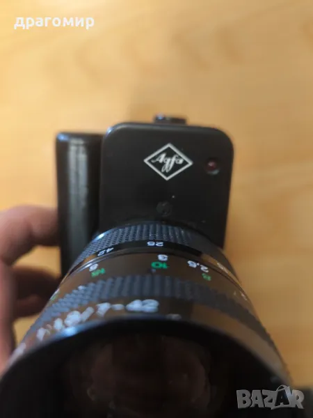 продавам видеокамера, работи, с оригинален кожен калъф, AGFA MOVEXOOM mos electronic, имам още много други фотоапарати, камери, обективи, чанти, светкавици, батерии, зарядни устройства, касети, филтри, ремъци, ленти, при закупуване на повече неща отстъпка