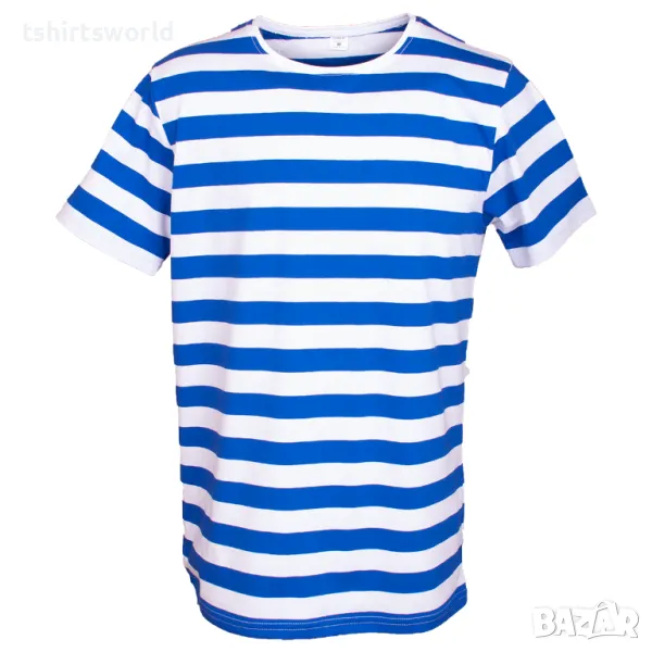Нова мъжка моряшка тениска на широко светлосиньо и бяло райе