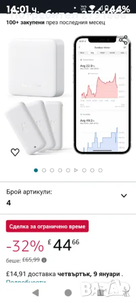SwitchBot WiFi термометър Хигрометър 3 броя комплект с Hub Mini, IP65,работи с Alexa