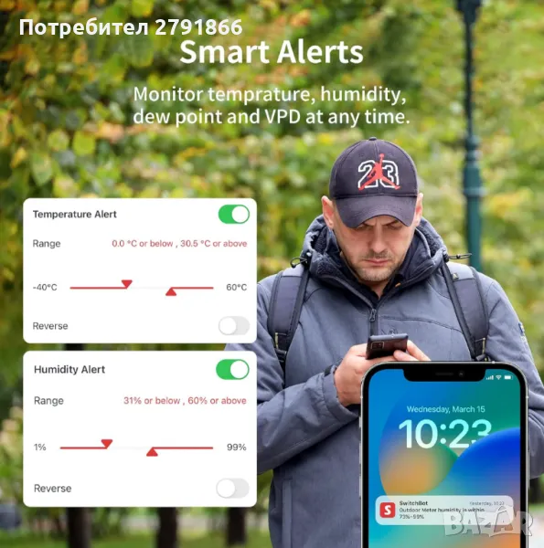 - По-интелигентни сигнали за уведомяване: В допълнение към температурата и влажността, хигрометърът вече поддържа и температура на точката на оросяване и VPD показания с абсолютна влажност като състояние на сцената. Когато някоя предварително зададена стойност бъде превишена, нашето приложение може да изпрати предупреждение за известяване, за да ви позволи да реагирате в реално време на промени в хладилници, детски стаи, къщи за домашни любимци, фризери, винарски изби, кутии за инструменти, тавани, мазета, пространства за обхождане, резервоари за влечуги, терариуми, кокошарници, инкубатори за яйца и др.