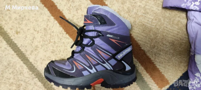 Детски ботуши/апрески към него в отлично състояние на професионалната марка "Salomon" с Технологии: Ortholite, Sensifit, Clima Shield Salomon™ Waterproof, Contagrip, EnergyCell+, непромокаеми.