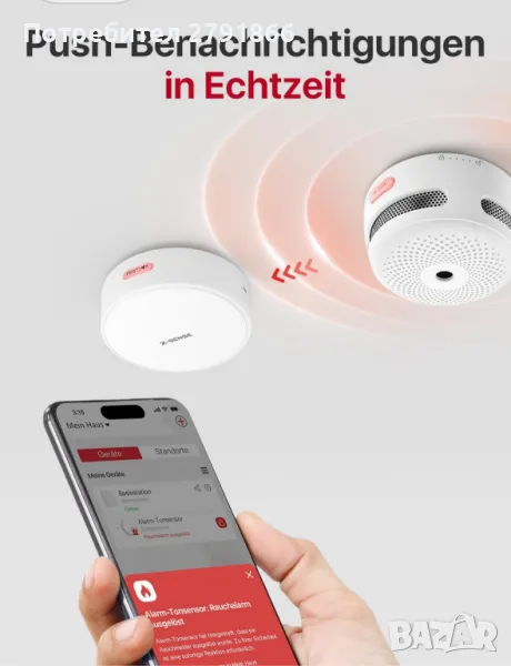 - Лесна инсталация: Поставете слушалката на 5 до 15 см от детектора и следвайте инструкциите на приложението, за да завършите настройката за минути