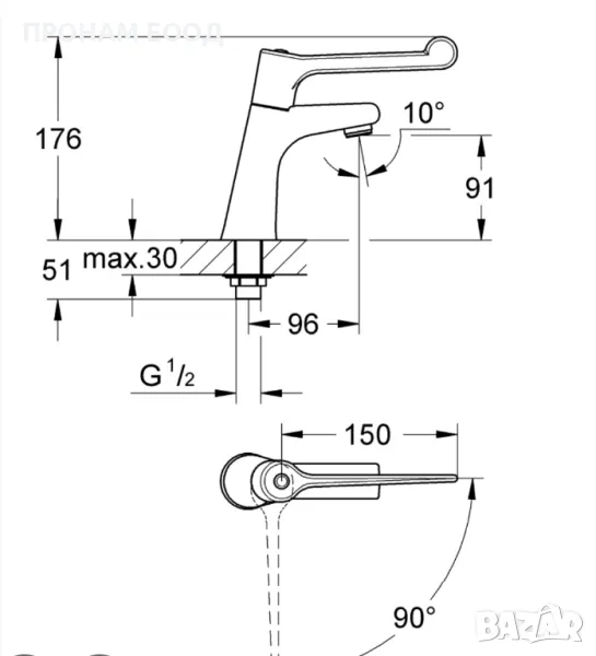 Смесител за мивка Grohe , снимка 1 - Смесители - 48405065 Смесител за мивка Grohe , снимка 2 - Смесители - 48405065 1/2
