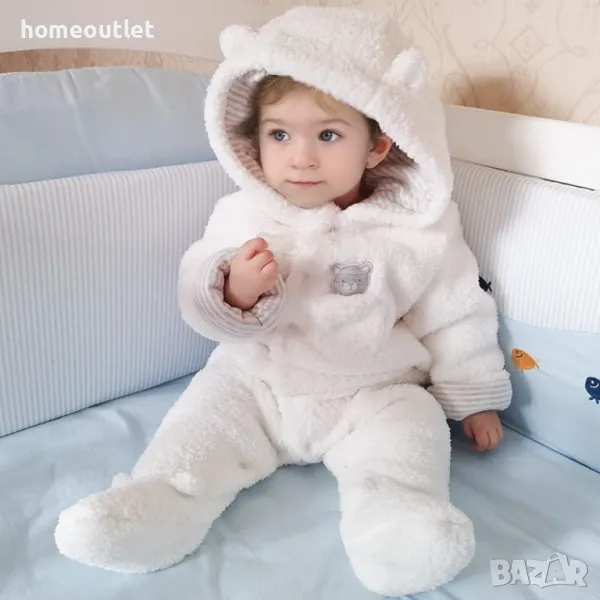 Зимният пухкав костюм за бебето е добре обмислен, красиво изработен и с внимателно подбрани материали.