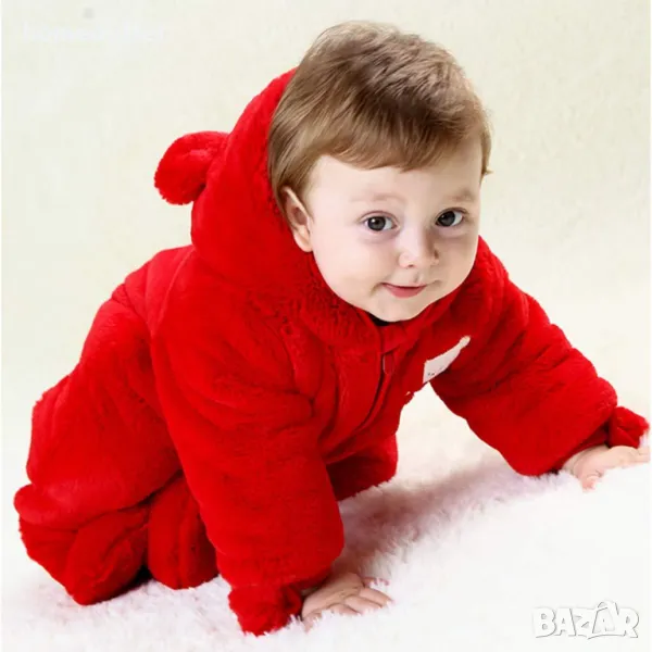 Зимният пухкав костюм за бебето е добре обмислен, красиво изработен и с внимателно подбрани материали.