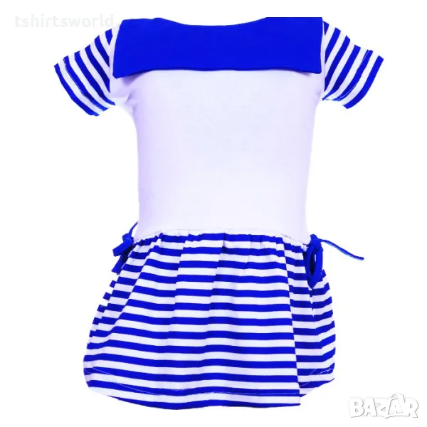 Нова детска моряшка рокличка с яка и трансферен печат Момиче на Сърф