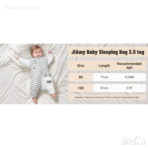 Специалният дизайн на краката на спалния чувал позволява на бебето да се движи и върти удобно.