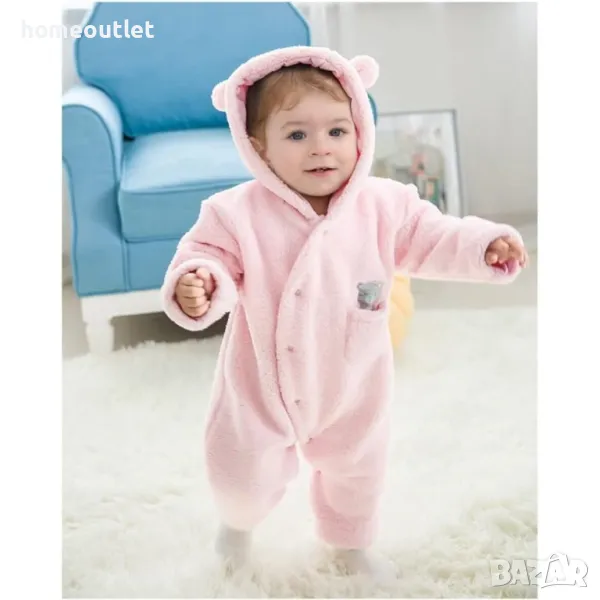 Зимният пухкав костюм за бебето е добре обмислен, красиво изработен и с внимателно подбрани материали.