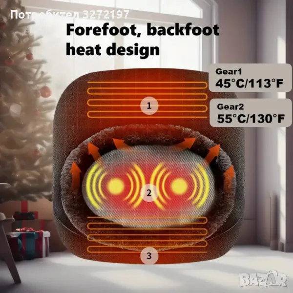 Масажор за крака Shiatsu,Машина с успокояваща топлина 2в1,топлина и дълбоко месене