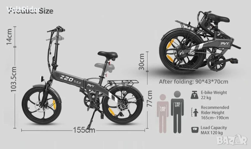 Z20 Pro от производителя PVY е изключително достъпен сгъваем велосипед с