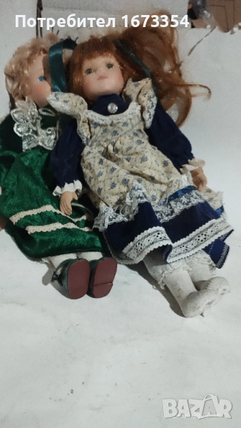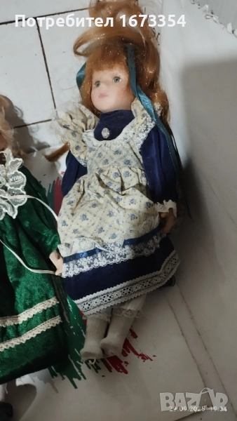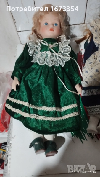 порцеланова кукла ( със зелена рокля) маркирана с леки надрасквания или ожулвания не съм правил опит да я почистя с всичко пълен комплект + шапката е нейна може би височина 38 -40 см след проверка на маркировката излиза COTZ (О е с две точки отгоре) цена 50.00 лв