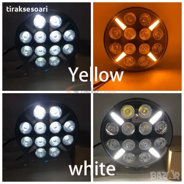 LED + DRL Диоден Халоген Фар Бял Оранжев Габарит Ø 230 мм 12V 24V за джип камион трактор багер земеделски машини и др.