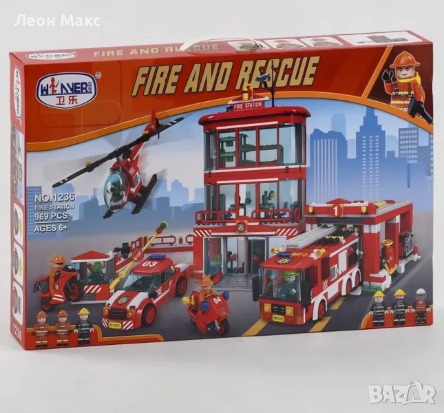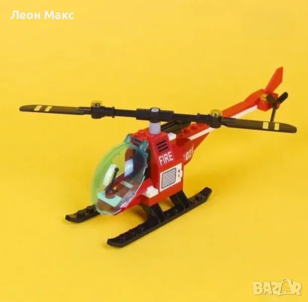 Конструктор Пожарна станция с хеликоптер 969 части, пожарна кола, тип лего