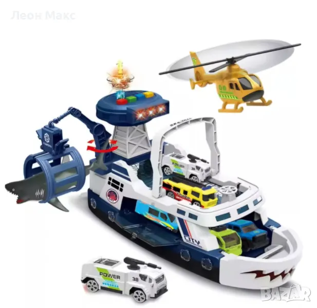 Детски Кораб с хеликоптер, лодка за лов на акули на батерии