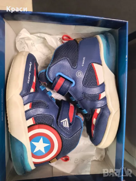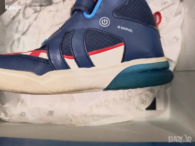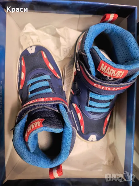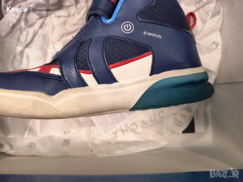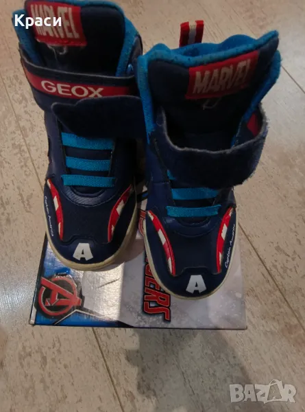 Обувките са марка GEOX, модела е Капитан Америка, светеща подметка с функция включване/изключване. Обувките са в много добро състояние.