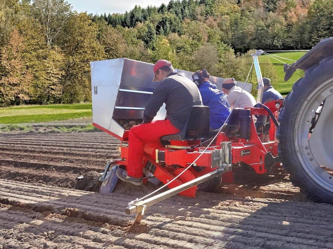 Сеялка за картофи и шафран марка Checchi&Magli модел F300L ХАРАКТЕРИСТИКА: ПРОИЗХОД: Италия Картофосадачка Може да бъде поръчана в разновидности: 1, 2, 3 и 4 реда Междуредово разстояние: минимум 60 см /опционално може да се поръча и на минимум 50 см/ Вътре редово разстояние: от 14 до 28 см за картофи, 3-12 см за шафран /опционално може да поръча и 8-12 см или 32-38 см/ Стойка за касетки с картофи Изсяващ разпределител с големи отвори Колелата спомагат за равномерното определяне на работната дълбочина Дискове за заравяне и образуване на леха Задвижване на изсяващия механизъм чрез назъбена колело Комфортна седалка да оператора Производителност: 6 дка на ден за един ред Бр. редове 1 ред 2 реда 3 реда 4 реда Маса 200 кг 275 кг 350 кг 440 кг Необх. мощност 20 к. с. 25 к. с. 30 к. с. 40 к. с. ОПЦИОНАЛНО ОБОРУДВАНЕ: Бункер за картофи Апарат за сеитба на шафран Маркири механични 150 см Хидравлични Маркири