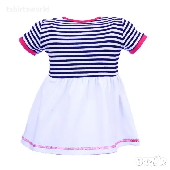 Страхотна нова бебешка моряшка рокличка с копченца, произведена в България, горна част 95% памук, 5% еластан, долна част 90% вискоза и 10% еластан. Подходяща както за официални събития, така и за ежедневието на вашето дете, като допринася за комфорт в горещите летни дни. Съчетанието между бяло-синьо райе и синьо трико придава спортно-елегантен стил на роклята. Високото качество на изработка не позволява разтегливост, завалване или губене на форма при пране.