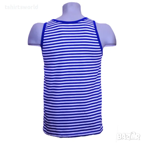 Страхотен нов детски класически моряшки потник на синьо и бяло райе, произведен в България от висококачествен 100% пениран памук с обло деколте. Леката и удобна материя е гарант за прохлада и комфорт както в горещите летни дни навън, така и вкъщи пред телевизора. Материята не позволява да се измачка, което го прави изключително ценен и желан от нашите дългогодишни клиенти. Потника може да се пере при температура до 40 градуса. Спокойно можем да гарантираме за качеството на изработката и ярките цветове на дизайна.