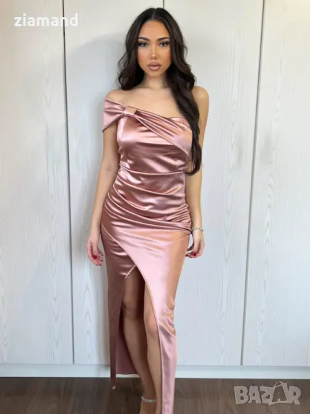 Дълга набрана рокля с цепка сатен