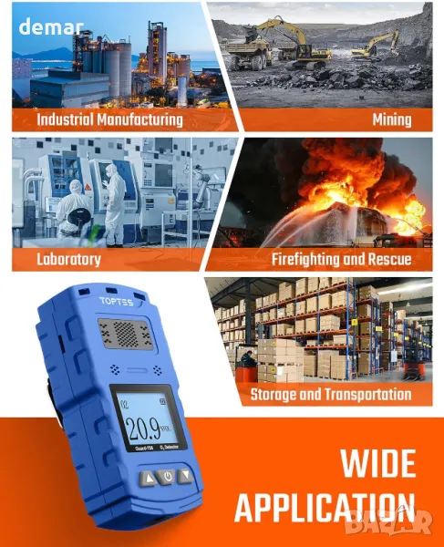 TopTes Guard-756 O2 монитор, преносим кислороден детектор,0,5s реакция
