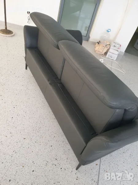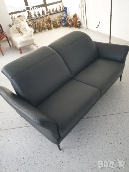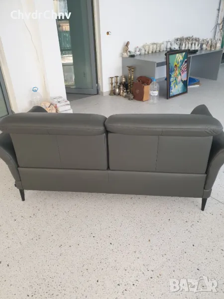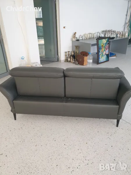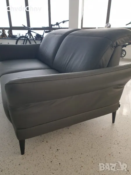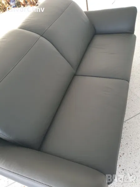 Диванът е като нов (ритейл внос от Германия), естествена кожа, без протрито/скъсано (не е ползван), здрави шевове, много удобен, мек, с модерен дизайн подходящ за офис/приемна.