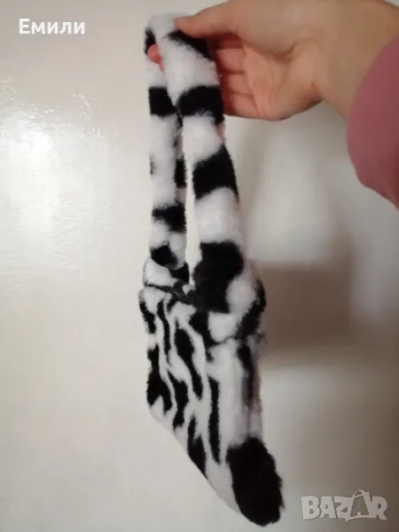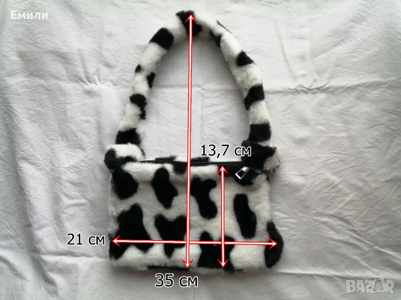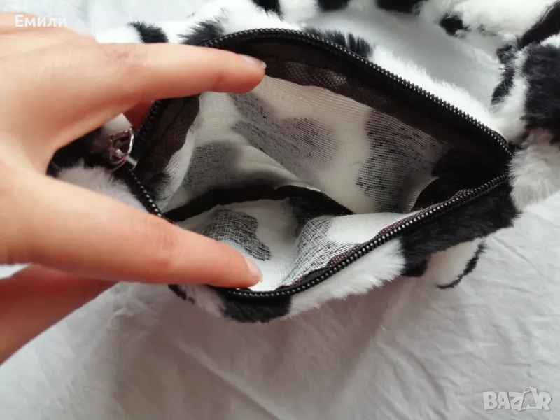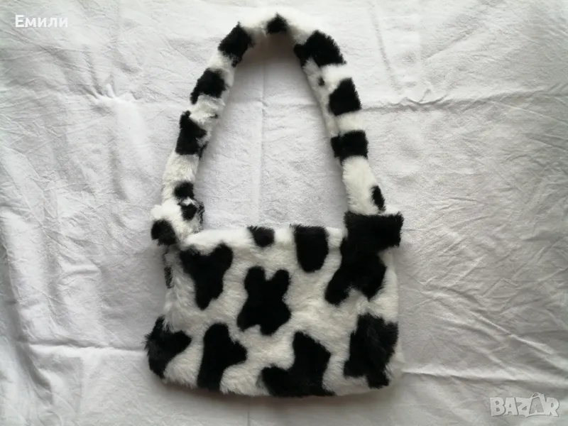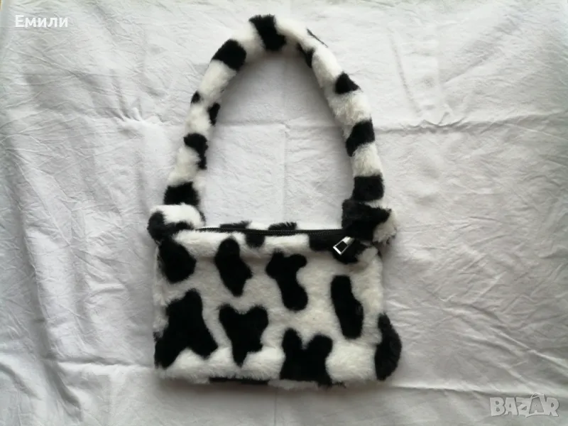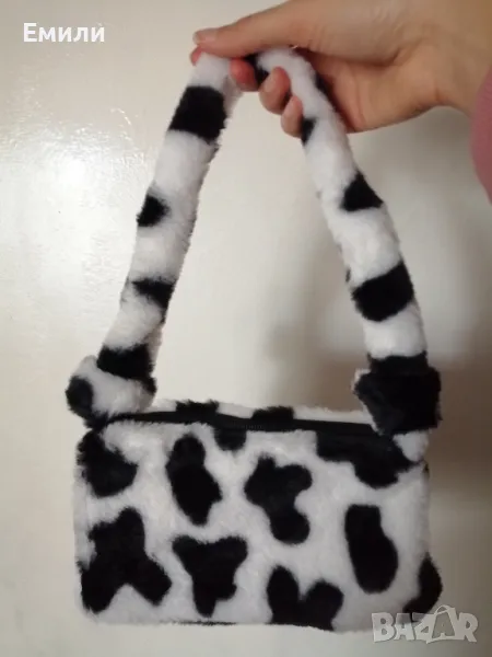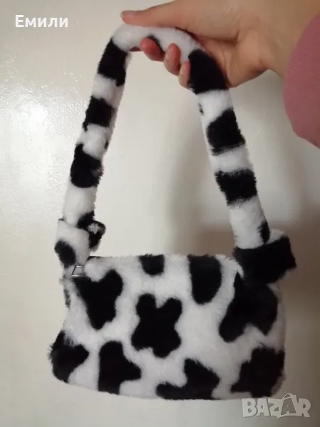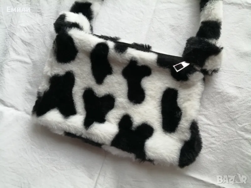Дамска пухкава малка чантичка с принт кравичка → Обява 48415062