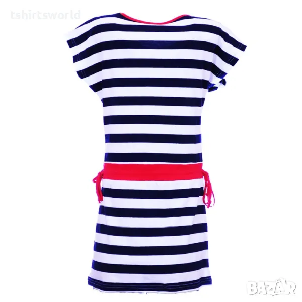 Нова дамска моряшка рокля на тъмносиньо и бяло райе, с червено коланче