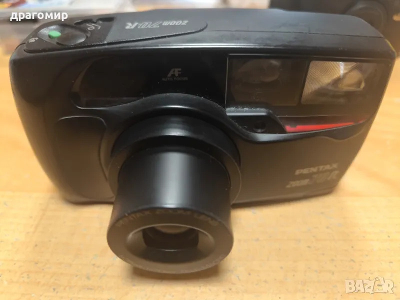 продавам лентов фотоапарат, работи, PENTAX zoom 70 R, имам още много други фотоапарати, камери, обективи, чанти, светкавици, батерии, зарядни устройства, касети, филтри, ремъци, ленти, при закупуване на повече неща отстъпка
